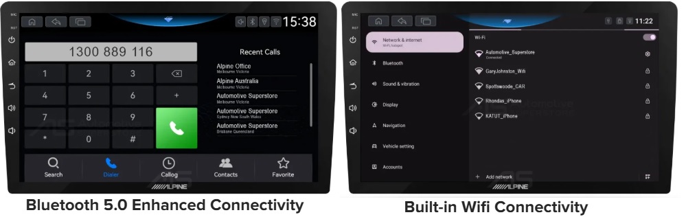 Alpine INE-AW409S hỗ trợ Bluetooth và WiFi, cho phép: