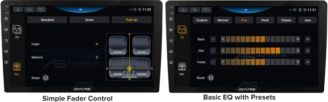 Màn hình ô tô Alpine INE-AW409S được trang bị trình điều khiển âm thanh EQ 3-band tùy chỉnh, cho phép người dùng tinh chỉnh âm thanh theo sở thích cá nhân. Nhờ đó, đáp ứng trọn vẹn nhu cầu thưởng thức âm nhạc trên mọi hành trình.