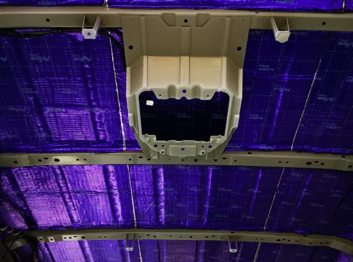 Vật liệu được cắt thành các miếng phù hợp với cấu trúc gân nổi của sàn xe. Trên bề mặt Pallium 2.6mm có sẵn các họa tiết hình vuông/chấm nhỏ giúp việc đo đạc cực kỳ chính xác. Kỹ thuật viên sẽ dán từ trung tâm ra ngoài, đảm bảo vật liệu phủ kín các điểm yếu về rung động của tấm tôn.