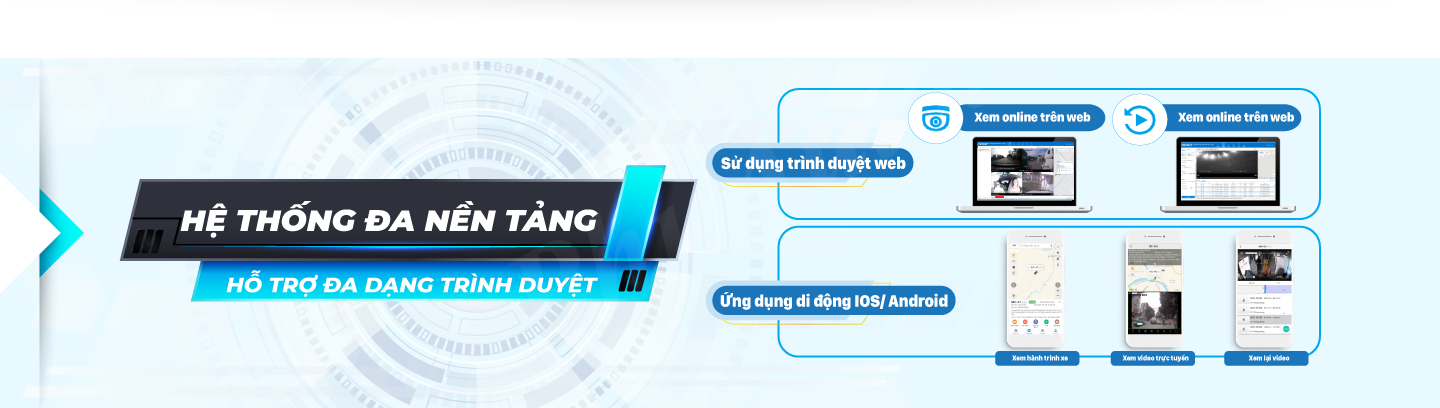 - Hệ thống giám sát trực tuyến: định vị GPS trực tuyến, lịch sử lộ trình, tốc độ di chuyển, hành vi tài xế.