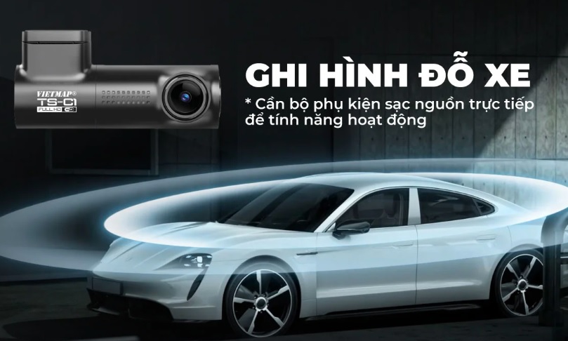 Hỗ trợ ghi hình đỗ xe: TS-C1 được thiết kế có khả năng giám sát và ghi hình lại các sự việc xảy ra xung quanh xe ngay cả khi bạn đã tắt máy. Tuy nhiên để tính năng này hoạt động người sử dụng cần lắp thêm thêm bộ nguồn trực tiếp ACC-Type C. Do sở hữu Pin siêu tụ điện nên Vietmap TS-C1 cũng có tính năng ghi hình khẩn cẩn cấp.